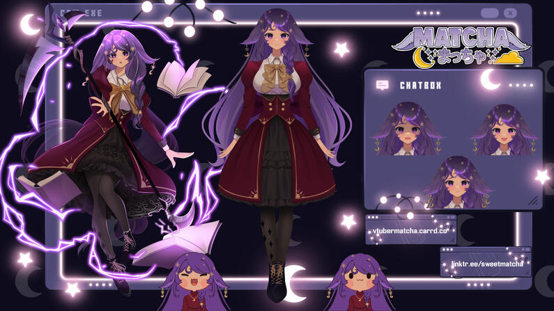 Vulpecula Coelestis is a sorceress in training. Her previous master died in a catastrophe protecting her with his final words being, "Gain knowledge to support others". In order to learn this at a faster rate she traveled to Earth and learned everything on the internet and ended up getting addicted to games. She learned that her master created her from stars, dust, and the shocking prowess of knowledge. While studying she learned that her name is confusing to pronounce so she created an alias of her favorite café drink...a matcha Latte. Matcha now roams the different dimensions searching for the last of her masters works.